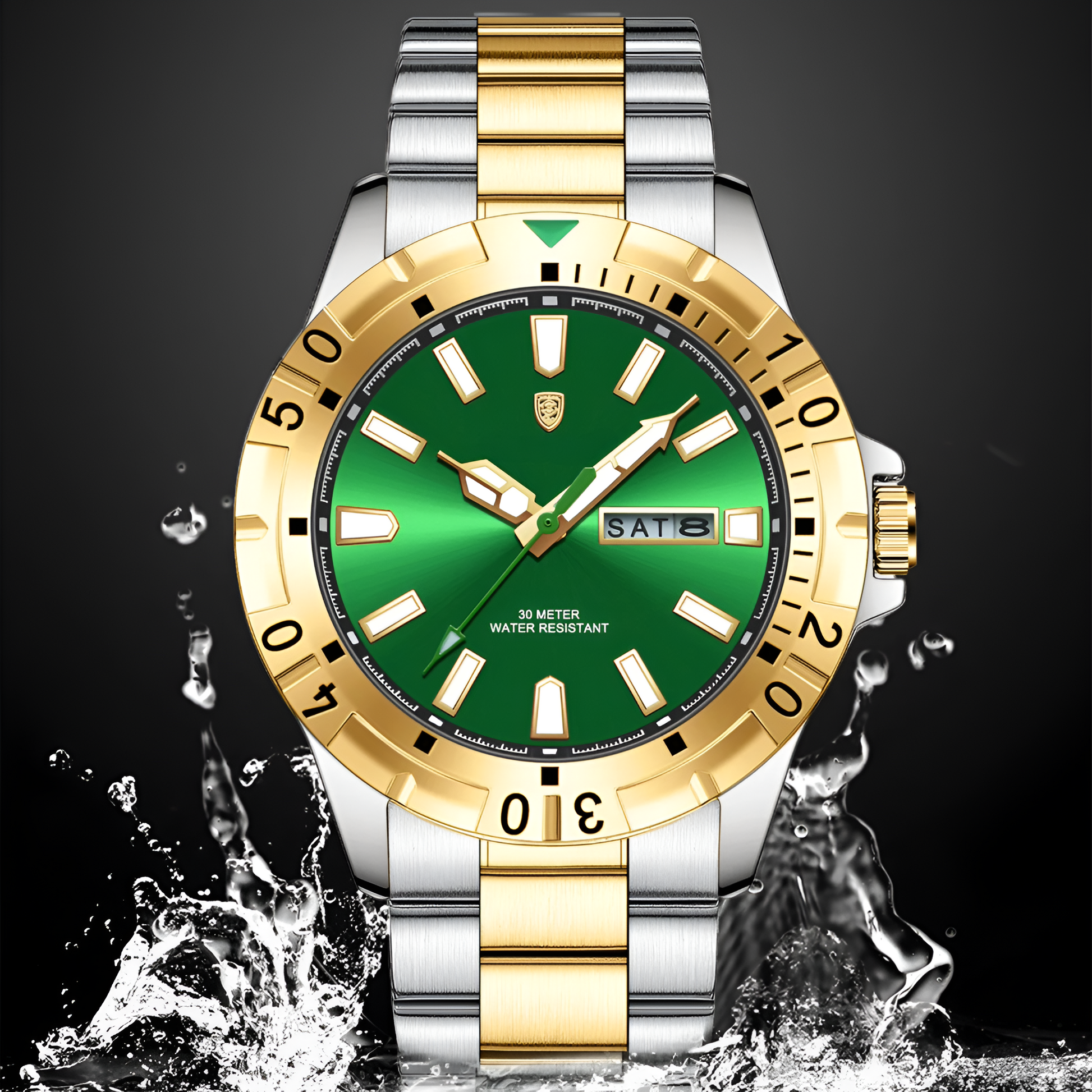 - Matériaux : Boîtier en acier inoxydable, bracelet en acier inoxydable, étanchéité 3 Bar